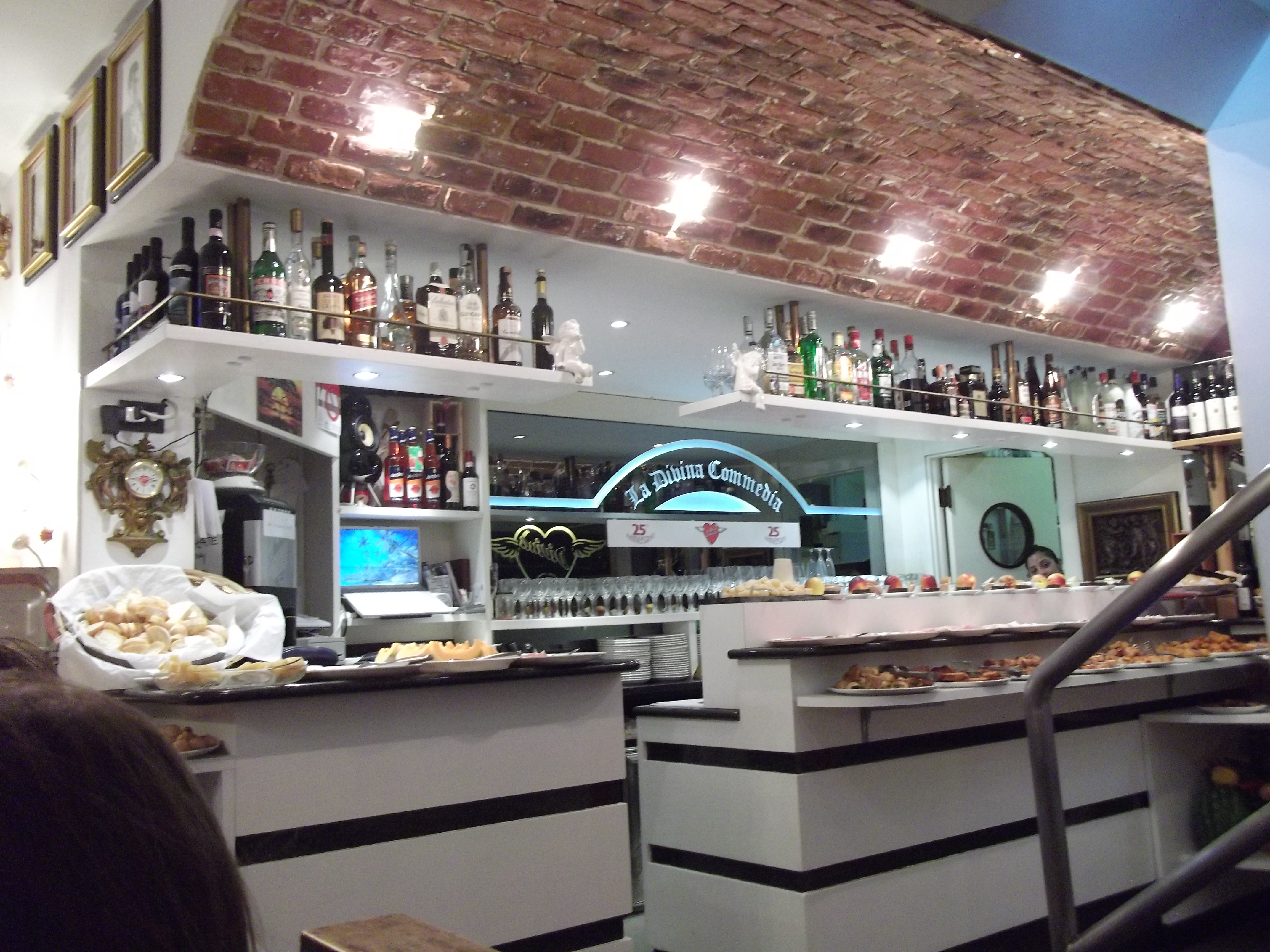 Doar cu mâncarea nu-i de joacă la Bellagio. Pentru a face faţă urcărilor şi coborârilor şi rătăcirilor în acest orăşel spiralat în jurul unui deal, recomand cu căldură La Divina Commedia, unde poţi mânca bine (şi mult, dacă doreşti!), pe alese (numai dintre feluri tipic italiene), şi foarte convenabil ca preţ.