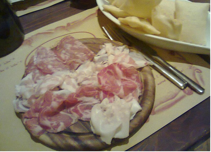 - Affettati piacentini (cu crostine, dar despre crostine vă voi spune mai multe la Bologna, acolo unde am făcut cunoştinţă)