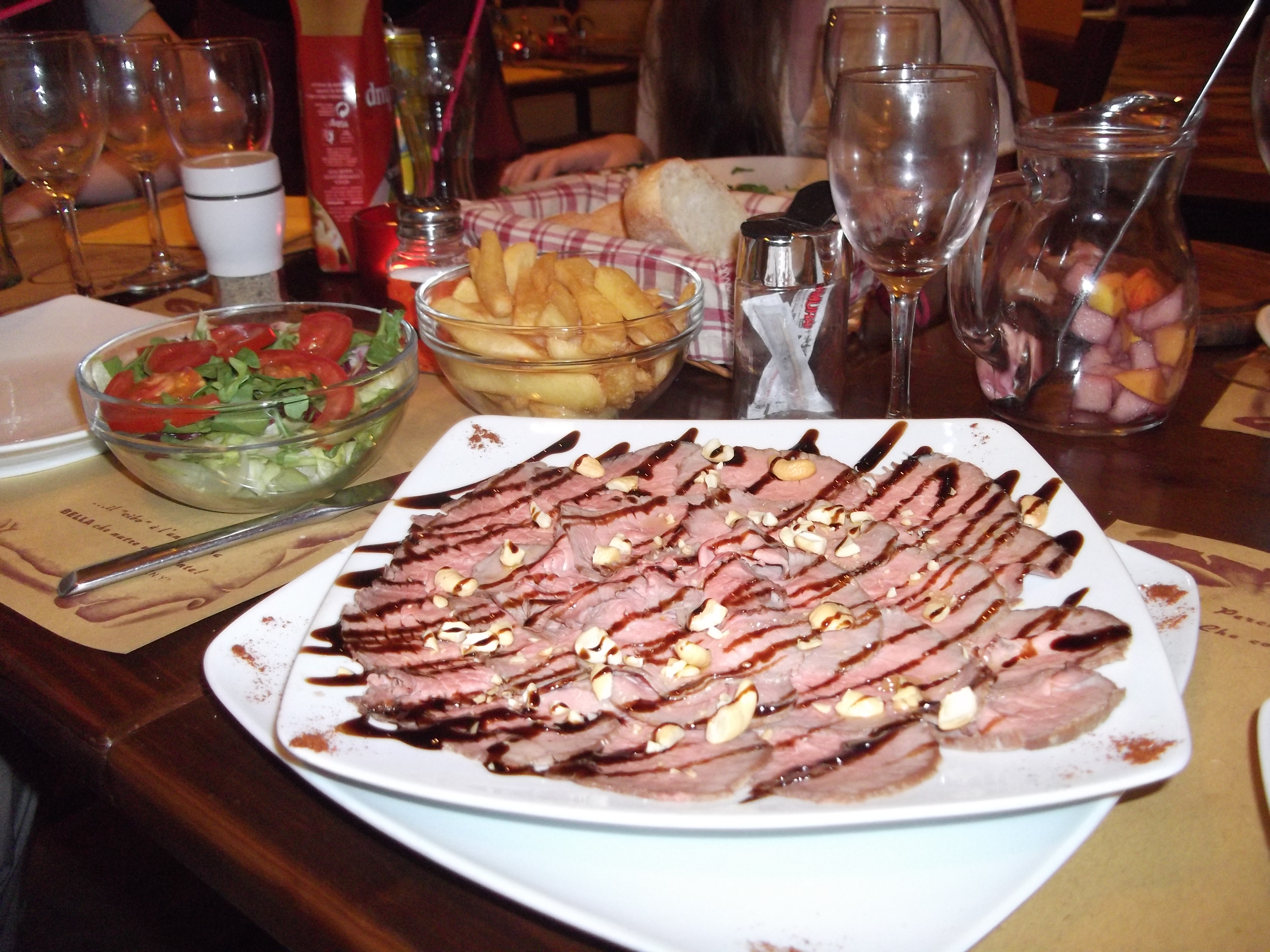- Tagliata di vitello all’aceto balsamico e amande (plus muguri de pin; de departe cea mai bună preparare a unei cărni de vită de care am avut parte vreodată)