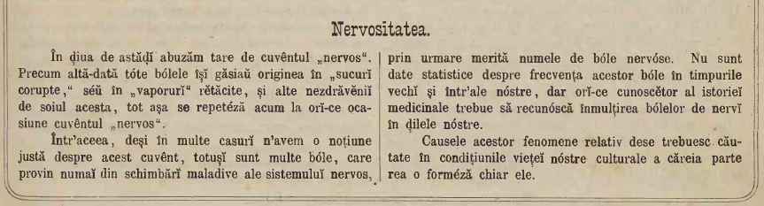 Dar un alt câştig de când urmăresc blogul e ca mi-a deschis gustul de a merge în bibliotecile virtuale care conţin publicaţii vechi digitalizate, căutând cel mai adesea articole despre istoria medicinei. Astfel că, tot azi, am dat şi peste un număr din Albina Carpaţilor (din 30 aprilie 1879) în care era publicat un articol intitulat Nervositatea; dintr-o notă de subsol am dedus că era o recenzie la o carte intitulată Dietetica pentru bolnavii de nervi, publicată la Viena de un anume doctor Alexandru Hirschfeld.