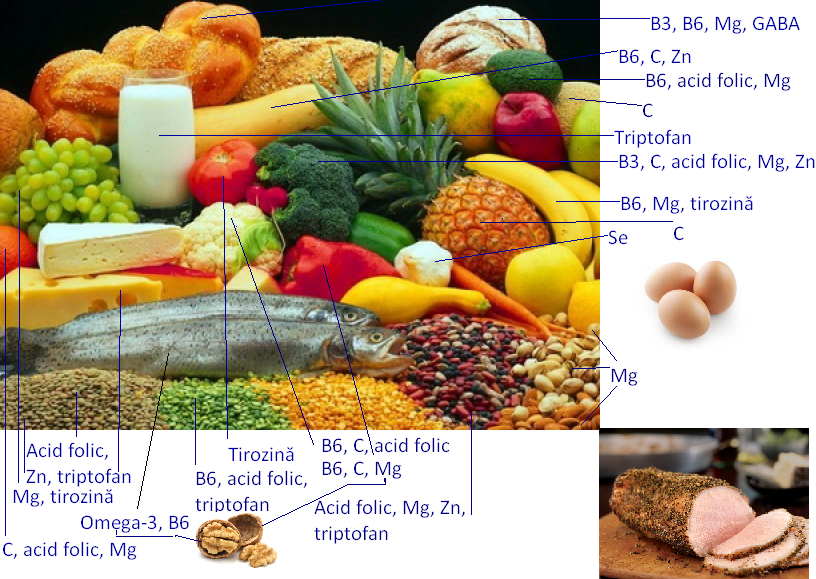 Pentru prevenirea depresiei (dar si pentru tratarea ei), alimentatia trebuie să asigure cantităţi sporite din următoarele 11 elemente: vitamina B3, vitamina B6, vitamina C, acid folic, magneziu, seleniu, zinc, acizi graşi omega-3, triptofan, tirozină, acid gama-amino-butiric (GABA).