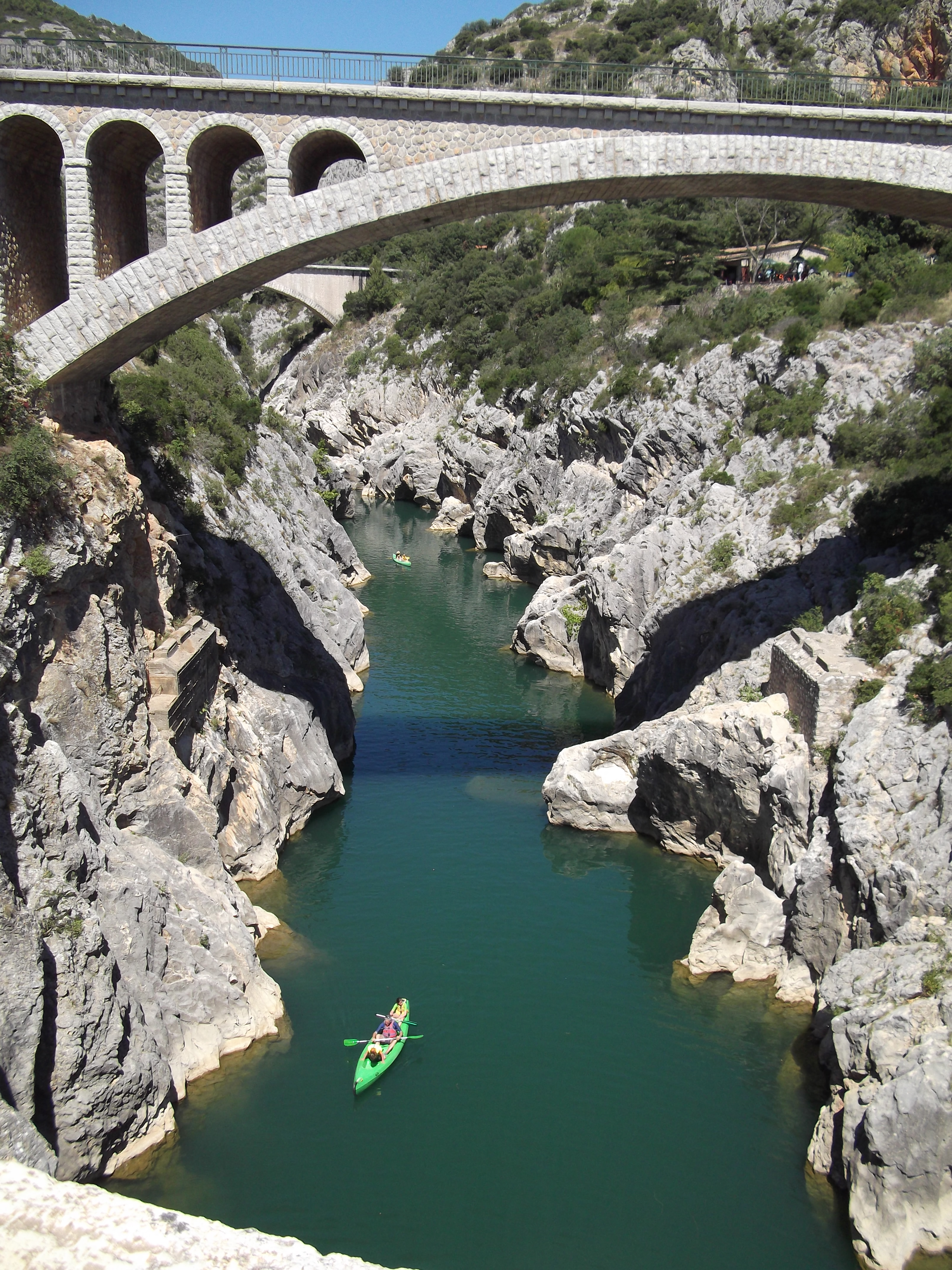 Urmarea e tot sub semnul intamplarii. Ieri plecasem spre Carcassonne. Am ratat intrarea pe autostrada 9 si ne-am trezit pe A750, pe care GPS-ul (neactualizat) nu o vedea; am luat harta si am constatat ca prima iesire era la 26 de kilometri, dar si ca acea iesire era foarte aproape de St. Guilhem-le-Désert. Am decis sa schimbam planul si sa mergem acolo, lasand Carcassonne pentru a doua zi.
