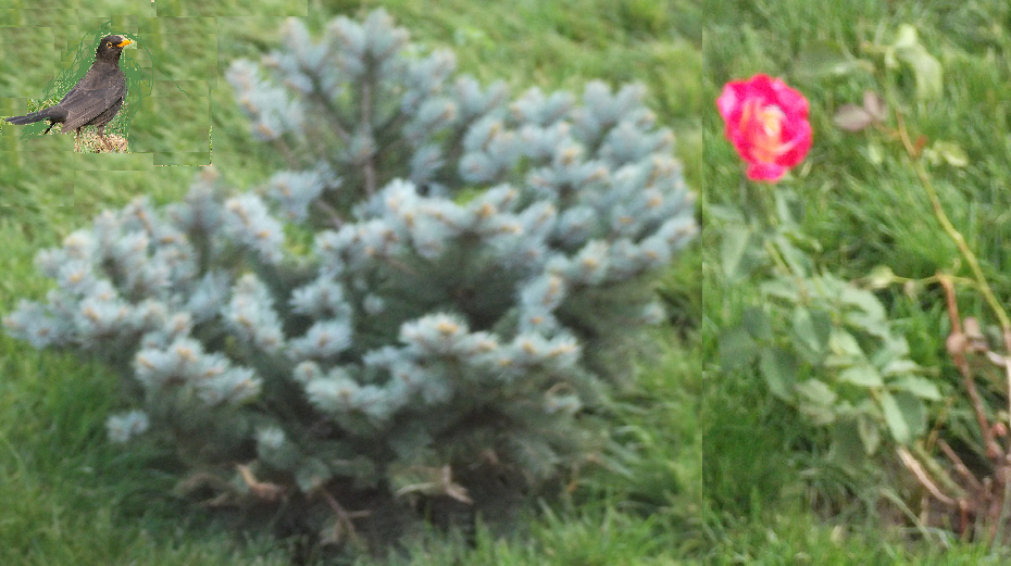 mierlaSemintele de sub banca nu le-am pozat, cred ca ati mai vazut prin oras, dar am mai dat peste o mierla, care s-a miscat prea mult si poza n-a iesit (dar ce credea ea, ca nu gasesc eu pe net o mierla care sa-i semene?);  inainte de a ajunge la muschetari mi-am mai oferit privirii un trandafir si doi pui de pin albastru.